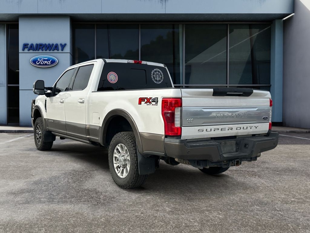 FX4 Off-Road Package: Transfer Case and Fuel Tank Skid Plates; Hill Descent Control; Colored Front and Rear Rancho Branded Shocks; Unique FX4 Off-Road Box Decal. Tow Technology Bundle: Ultimate Trailer Tow Camera System; Adaptive Steering; Lane-Keeping Alert; Automatic High Beam. King Ranch Ultimate Package: Twin Panel Power Moonroof; Blind Spot Information System (BLIS); Tailgate Step and Handle; Quad Beam LED Headlamps and LED Taillamps; Power-Deployable Running Boards; Multi-Contour Seats. Order Code 700A: Unique King Ranch Leather 40/console/40 Front Seats; 18 Bright Machined Cast Aluminum Wheels; 10. 000 Lb Payload Package GVWR; Premium Sony Audio with single-CD/MP3 Player. Twin Panel Power Moonroof. Quad Beam LED Headlamps and LED Taillamps. Power-Deployable Running Boards. Adaptive Cruise Control and Collision Warning. Ultimate Trailer Tow Camera System. Adaptive Steering. White Platinum Met TC. Blind Spot Information System (BLIS). Tough Bed Spray-In Bedliner. Electronic-Locking with 3.31 Axle Ratio. Tailgate Step and Handle. Rear CHMSL Camera. LT275/70Rx18E BSW A/T (4) Tires. Upfitter Switches (6). Transfer Case and Fuel Tank Skid Plates. **Equipment listed is based on original vehicle build and subject to change. Please confirm the accuracy of the included equipment by calling the dealer prior to purchase.**