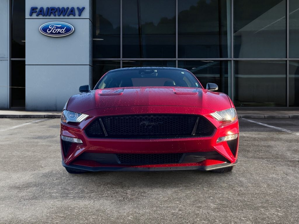Mustang Nite Pony Package: Black Rear Spoiler; Black Mirror Caps; Black GT. 5.0 and Pony Badges; Black Grille. Equipment Group 401A: 18 X 8 Machined-Face Aluminum Wheels; Leather-Trimmed Bucket Seats with Color Accents; 5.0L Ti-VCT V8 Engine; 12 LCD Digital Instrument Cluster with MyColor; 235/50ZR18 BSW AS Tires; Heated Steering Wheel; AM/FM Stereo; Memory Driver Seat. Mirrors and Ambient Lighting. Premier Trim with Color Accent Group: Angled Brush Aluminum Instrument Panel; Premium Floor Mats with Accent Stitch. Ford Safe and Smart Package: Voice-Activated Touch-Screen Navigation System; Adaptive Cruise Control. Rapid Red Metallic TC. Rapid Red Metallic TC. Mini Spare Wheel and Tire. **Equipment listed is based on original vehicle build and subject to change. Please confirm the accuracy of the included equipment by calling the dealer prior to purchase.**