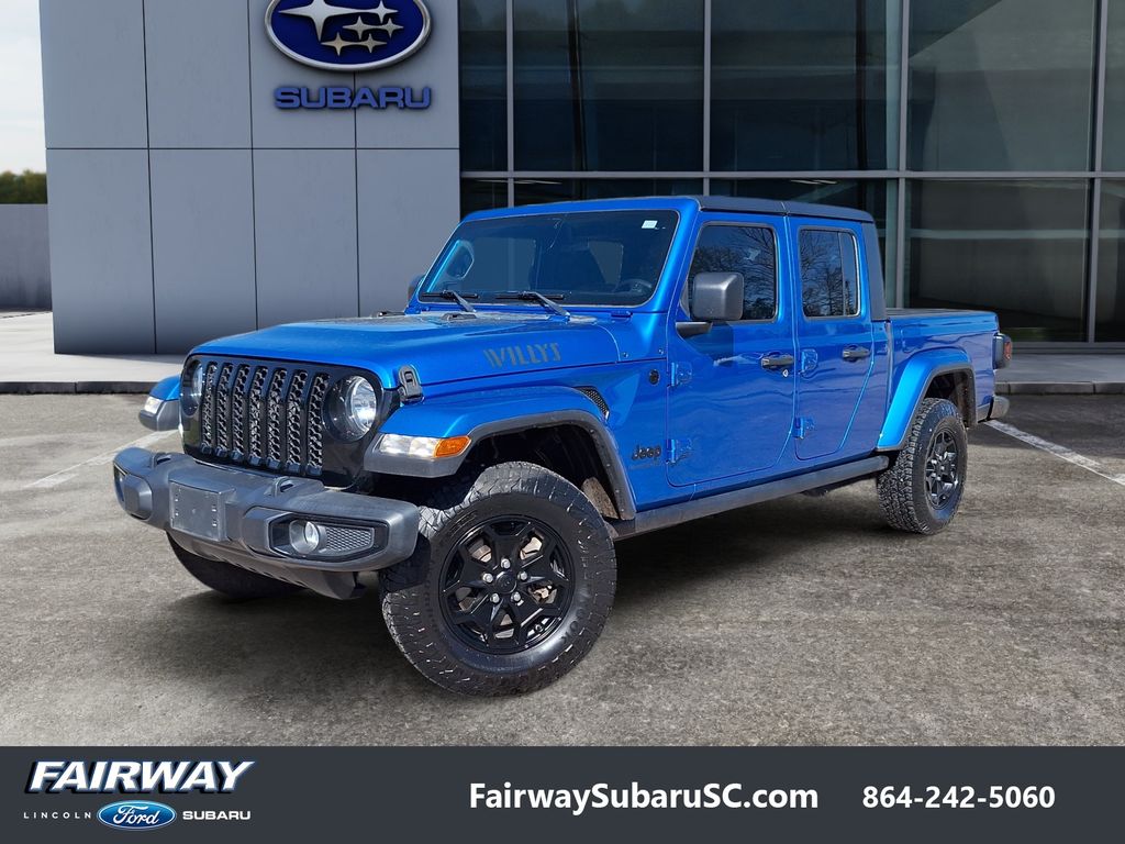 2021 Jeep Gladiator Willys â" 0 miles, 4WD, V6 3.6L Gasoline, located in Greenville, SC. This rugged Jeep Gladiator Willys combines trail-ready capability with on-road comfort and modern convenience. Powered by Jeep's proven 3.6L V6 and equipped with four-wheel drive, it's built for confident towing, off-road adventures and daily driving. With exceptionally low mileage, this Jeep Gladiator presents an outstanding value for buyers seeking like-new condition without the new-vehicle price. Premium features include Remote Start for convenient climate control, Satellite and XM Radio to keep your favorite entertainment on the road, Hands-Free Bluetooth for safe, connected calls and audio streaming, plus a Heated Steering Wheel for added comfort in cooler weather. The Willys package enhances capability with rugged styling, off-road tuned suspension and performance-oriented tires that help tackle dirt, rocks and rough trails. Located in Greenville, SC, this 2021 Jeep Gladiator Willys is priced to sell â" the best price available for comparable low-mileage Jeep Gladiators in the area. Whether you're navigating city streets or heading off the beaten path, this Jeep Gladiator blends toughness, modern tech and condition like new. Schedule a test drive in Greenville today and take advantage of this exceptional low-mileage Jeep Gladiator Willys at the best local price.