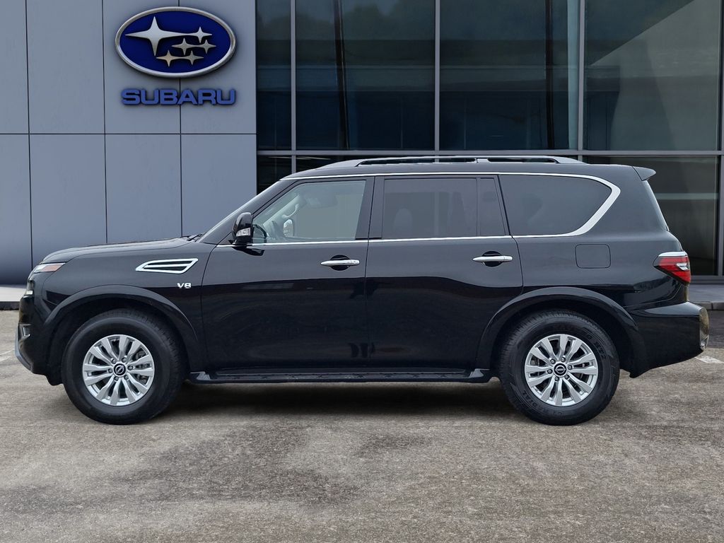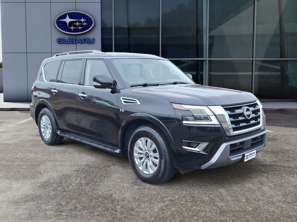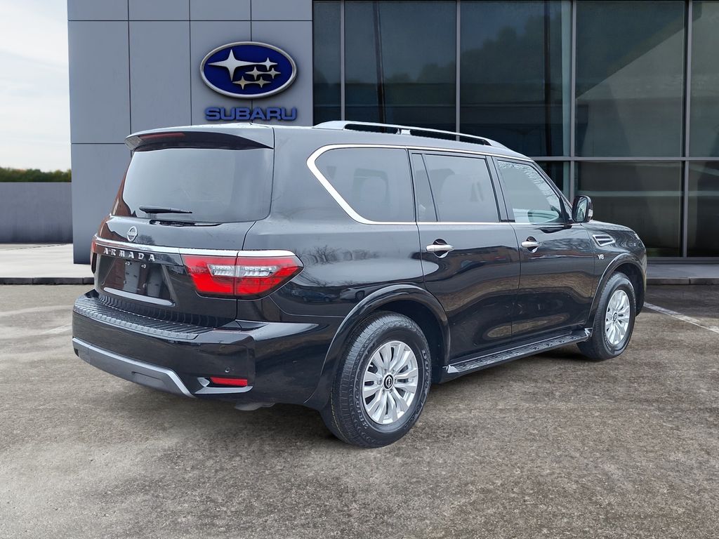 2022 Nissan Armada SV 4WD with V8 5.6L â" Greenville, SC. Ready for adventure and engineered for comfort, this powerful Nissan Armada pairs a high-output 5.6L V8 gasoline engine with four-wheel drive capability for confident handling in any season. Spacious three-row seating and refined interior appointments make it ideal for family trips, towing, or weekend escapes. This Nissan Armada SV comes loaded with tech and convenience features: integrated Navigation to keep you on course, Apple CarPlay for seamless smartphone integration, XM Radio for endless entertainment, Rear Parking Sensors and Back-Up Camera to simplify parking and enhance safety. Thoughtful storage solutions and comfortable seating mean long drives stay relaxing, while robust towing capacity and a muscular V8 deliver the performance you expect from a full-size SUV. Located in Greenville, SC, this 2022 Nissan Armada is competitively priced and represents the best value in the area â" exceptional condition and a price that beats nearby listings. Whether you need capability for rugged roads or a roomy, refined daily driver, this Nissan Armada SV checks all the boxes. Schedule a test drive in Greenville today and experience the blend of power, technology, and comfort firsthand. Don't miss the best-priced 2022 Nissan Armada SV 4WD with V8 â" a smart buy for drivers who want strength, space, and modern features without compromise.